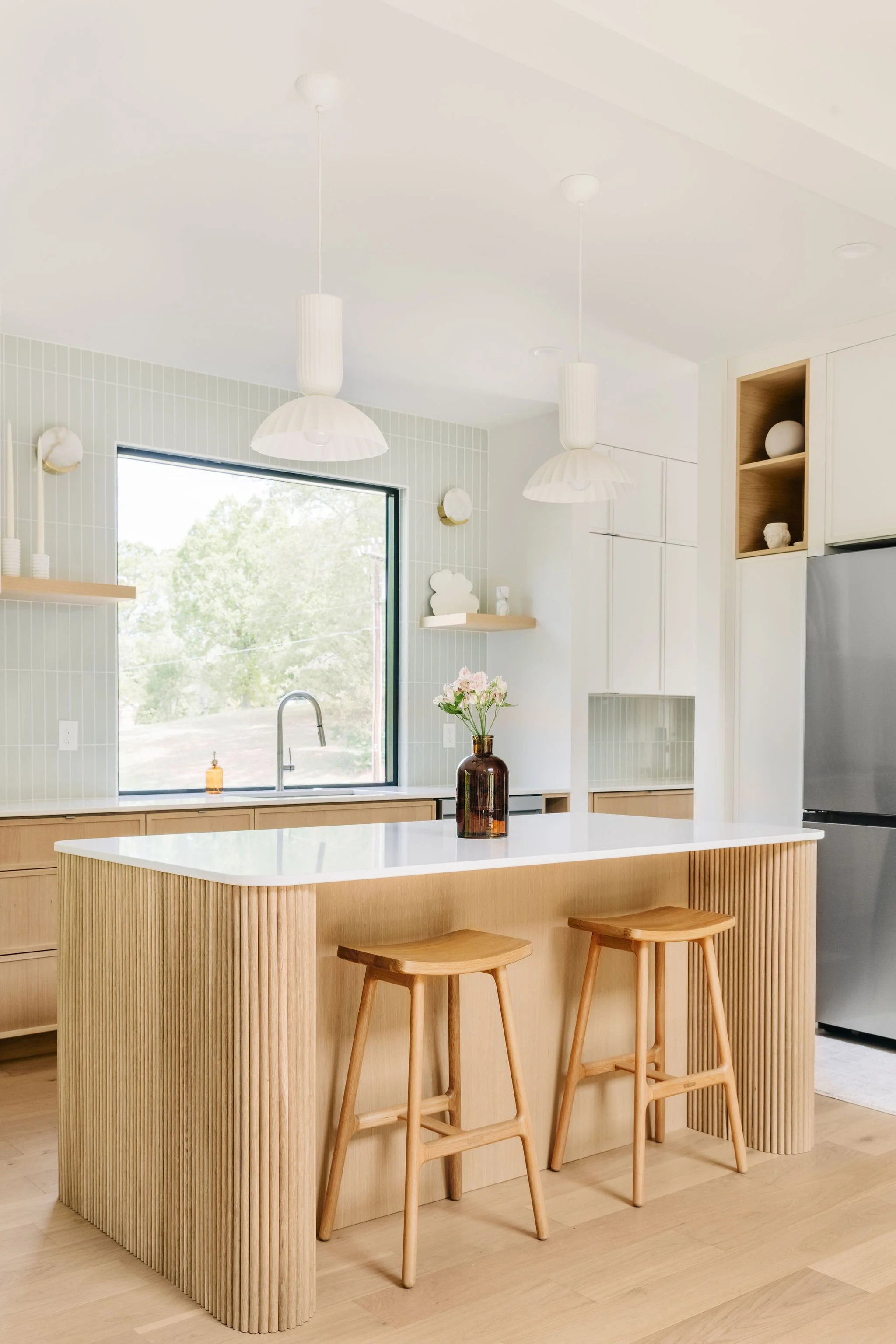 All cabinetry is designed and built in house by BLOM Built, maximizing the functionality of this efficient yet airy floor plan layout.